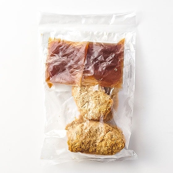 お好みで白米をご用意ください。 1.電子レンジ(500W)にて、凍ったままの製品を少し深みのある皿に移し、ラップをかけず2個約1分10秒-1分30秒間、4個約2分30秒-3分間温めてください。 2.温まったカツにタレをかけ浸し、白飯を盛り付けた丼の上に乗せます。 3.皿に残ったタレを丼の上に回しかけて完成です。