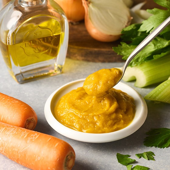 たっぷりの香味野菜をオリーブオイルで長時間じっくり炒め上げ、甘味、旨みが1キューブにぎゅぎゅっと閉じ込められた野菜ペーストです。 自宅で作るのは時間も手間もかかって大変ですが、この冷凍キューブがあればお料理の味わいに深みがでます。 ■野菜をたっぷり使用しました。