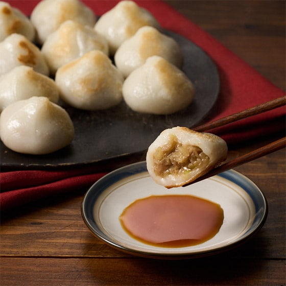 皮には霧島産の餅を練り込み、霧島高原純粋黒豚(かごしま黒豚)、国産野菜を使用しています。 春には油で揚げてさっぱりポン酢で、夏はビールのあて!オーブンでこんがり焼いておつまみに。秋は鍋の具材として。冬は正月の雑煮のお餅の代わりに餅ぎょうざで話題性も十分。一年通して名脇役! モチモチとした食感で噛めば肉汁が溢れてきます。 ■「霧島の餅米」で皮に餅米を練り込み具材には「霧島の黒豚」