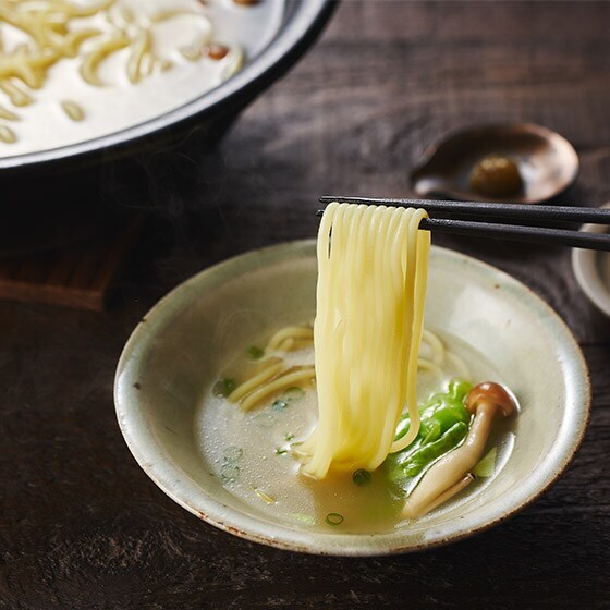3.最後に残ったスープでちゃんぽん麺をお楽しみください。ちゃんぽん麺の代わりにうどん麺や雑炊でもおいしくお召しあがりいただけます。