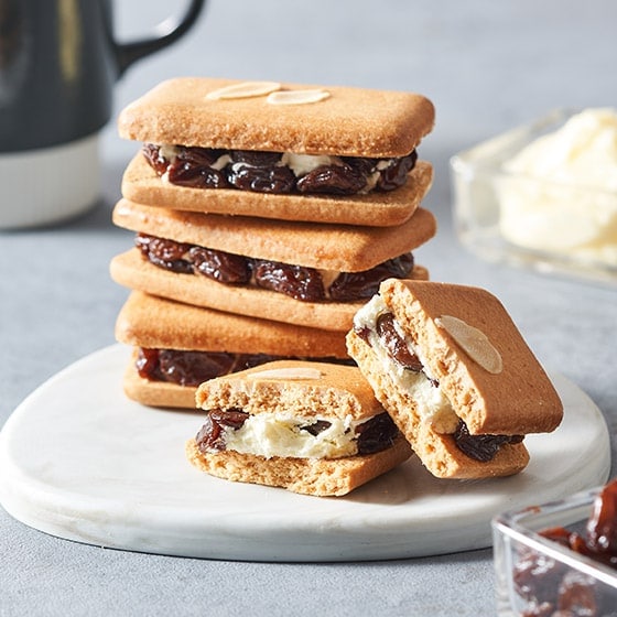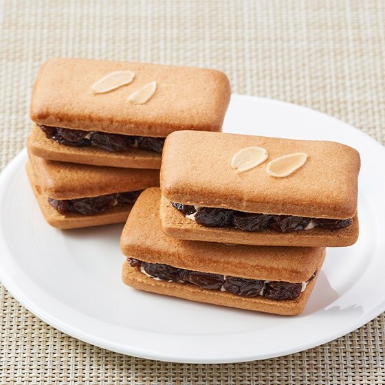 サンドしたバタークリームを楽しむため、クッキーはさっくり歯ごたえ良く仕上げ、レーズンの食感を楽しめえる様あえてバタークリームの上にレーズンをトッピングしてそれぞれの味を楽しめるようにしています。 ■お召し上がり方
