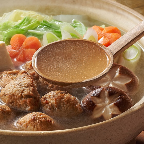 鶏ガラの深いコクと、香味野菜の風味が後引く、清湯鍋の素です。 鹿児島産鶏ガラのチキンエキスを使用しています。 最後まで飽きずにお召し上がりいただけるように、塩味を効かせ、旨みやコクがありつつもあっさりとお召し上がれるような味わいにしました。 野菜やお肉などの具材がスープの旨みを含むことによって、より一層おいしくいただけます。 しめは、茹でたラーメンを加えるのがおすすめです。 ■お召し上がり方