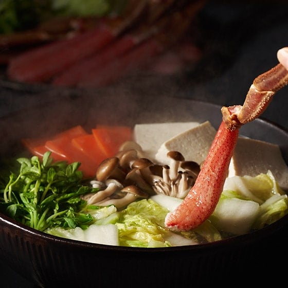お召し上がる直前にボウル等に水を貼り、凍ったカニをパックの状態のままいれ、流水をあてて解凍してください。 長時間の解凍や、急な温度変化により身や殻が黒く変色する場合がございますが、黒変そのものには害はありません。 【調理例(カニしゃぶ)】 昆布などを浸してとった出汁を沸騰させ、半解凍した本商品を出汁にくぐらせてお召し上がりください。