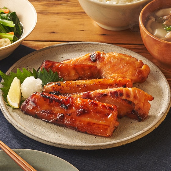 - レンジで簡単!ふぞろい鮭ハラスの西京焼き