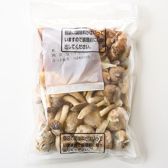 具材(生つくね、ぶなしめじ、ごぼう、なめこ)とかつおだしと昆布だしを合わせた醤油のスープの素がセットになっています。 つくねはごぼうと青ネギ、生姜を入れて、野菜の風味も楽しめる様に仕上げています。 冷凍のまま調理可能な食材セットで、白菜を250g程度を加えるだけで一品が完成します。 長ねぎや、きのこ類をさらに加えてもおいしくお召し上がりいただけます。 ■国産野菜使用