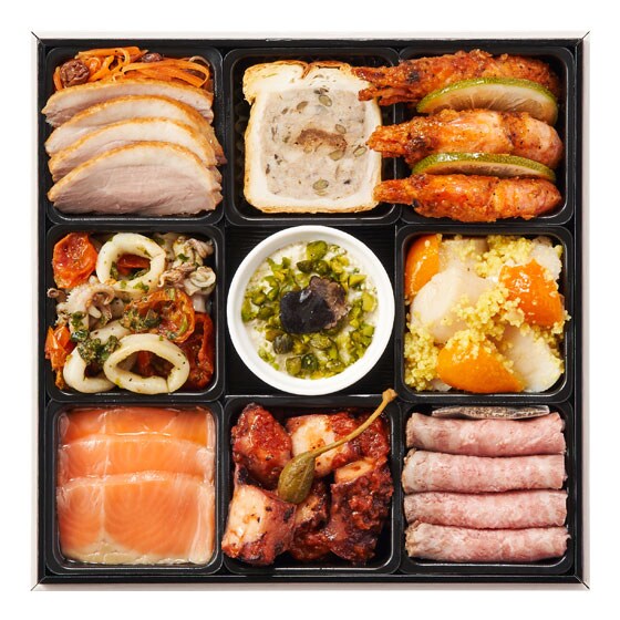 DEAN & DELUCA監修オードブル。DEAN & DELUCAオードブルの世界観が随所に織り込まれ、味も見た目も食卓の「特別感」を演出。大晦日の乾杯シーンにも楽しんでいただけるよう、ワインやお酒との相性を追求した「オードブル重」です。 ■お召し上がり方