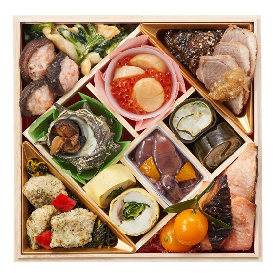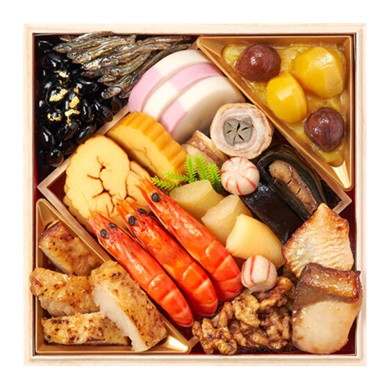 人気「高砂」から伝統的な和風品目が充実したお重が登場!特製醤油タレで漬け込んだ「ほたるいかの沖漬」、甘酢に通した「シマアジ金紙巻」、サザエの旨煮やふぐの青のりソース和えなど、お酒にもぴったりな和風品目を心ゆくまで楽しめます。 ■お召し上がり方