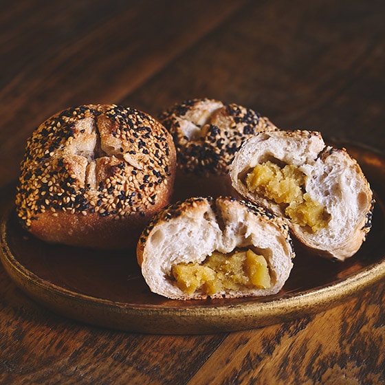| 原材料 | 小麦粉(国内製造)、さつまいもフィリング(さつまいも(五郎島金時)、砂糖)、玄米、いりごま、パン酵母、ライ麦、食塩、三温糖/乳化剤、(一部に小麦・ごまを含む) |