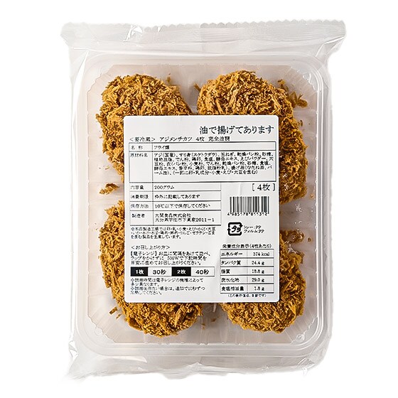 レンジで温めるだけで食べられるアジメンチです。 国産のアジと野菜などを使用することで、食べやすくしました。青魚を手軽にとることができる一品です。 ポン酢をかけた大根おろしと一緒に食べると、さっぱりとお召し上がりいただけます。 ■お召し上がり方