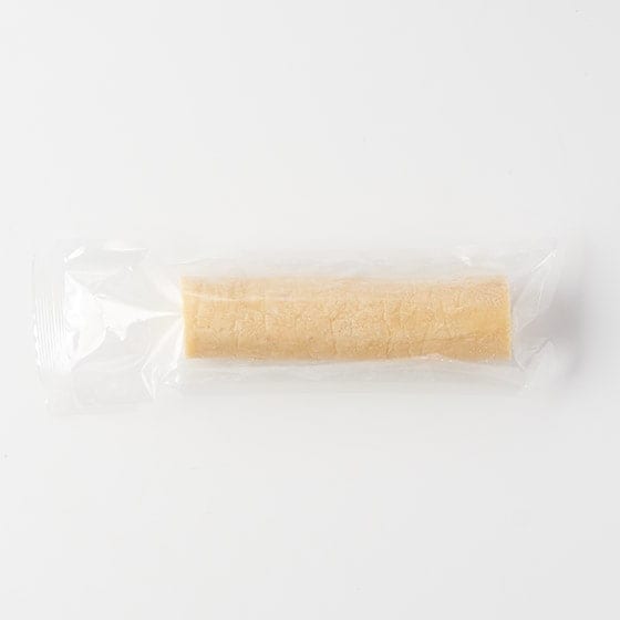 食べられる分量をお好みの厚さに冷凍の状態でカットしてオーブンで焼いてお召し上がりください。 1cm幅の時に160度で約20-25分が目安です。 米粉を主原料にしていますので固く凍った状態でカットすることをお勧めします。うまくカットできなかった場合は、手で形を整えてから焼いてください。