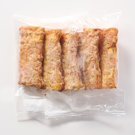 コーンやにんじん、玉ねぎのやさしい甘みが特長の魚肉ねり製品です。 スティック形状にすることでお子さまにも食べやすい製品に仕上げました。 ■「新鮮な野菜を工場で加工」がこだわりです