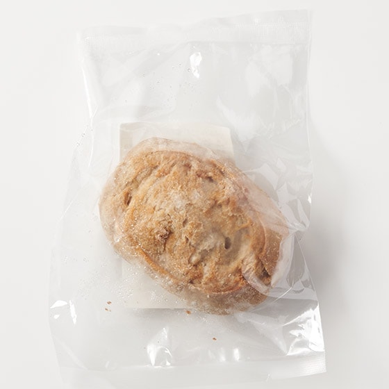 袋のまま常温で1時間程度かけて解凍してください。解凍後トースターで温めると、より一層おいしくいただけます。 加熱する場合は、凍った状態で同封されている脱酸素剤を取り出し、袋に入れたまま電子レンジ(500W)で40-50秒程度温めてください。