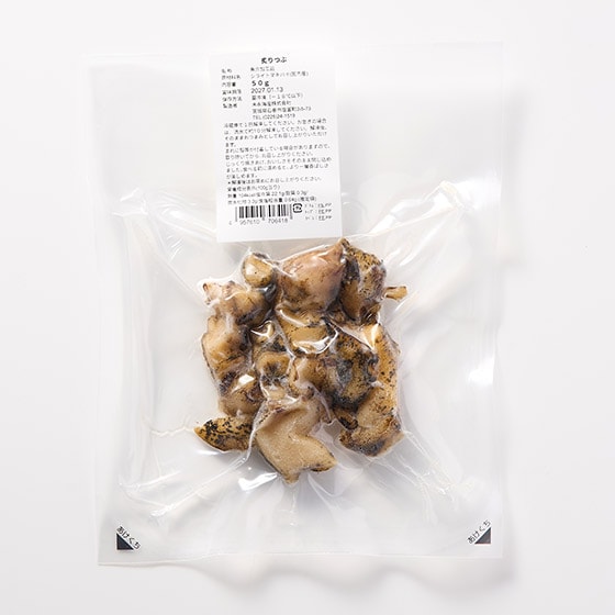 国産シライトマキバイを使用し、潮煮にした後に直火で炙り低温熟成させました。 塩気が効いており、コリコリの食感、炙りの香ばしさをご堪能いただけます。 レモンを絞って、生姜醤油、わさび醤油、おろしポン酢でいただくのがおすすめです。 ■製法のこだわり