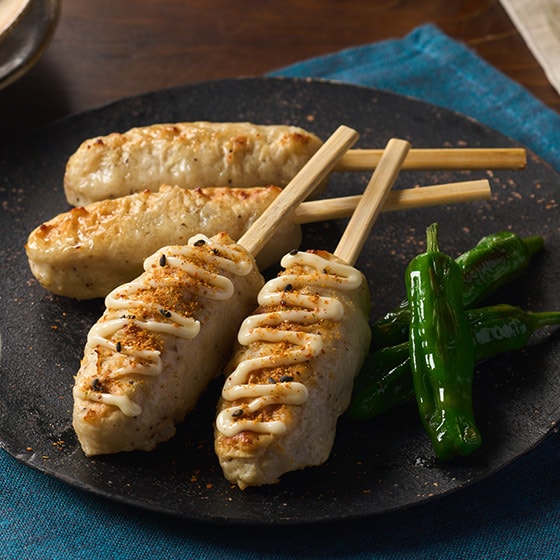 魚のすりみに『鶏ミンチ』と『鶏皮』、細かくカットした『鶏軟骨』を混ぜ込み、ぎゅっと固めて焼いた魚つくね串です。 甘みがあり、塩味が効いているので、おでんやお鍋の具材にしていただくと良い出汁がでておすすめですよ。 鶏軟骨のコリコリした食感をアクセントにお楽しみください。 ■お召し上がり方