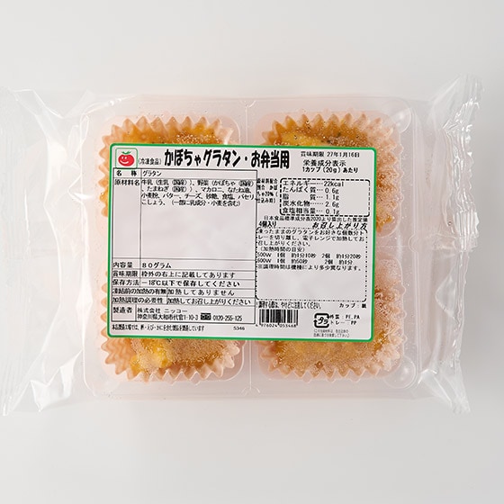 | 原材料 | 牛乳(生乳(国産))、野菜(かぼちゃ(国産)、たまねぎ(国産))、マカロニ、なたね油、小麦粉、バター、チーズ、砂糖、食塩、パセリ、こしょう、(一部に乳成分・小麦を含む) |