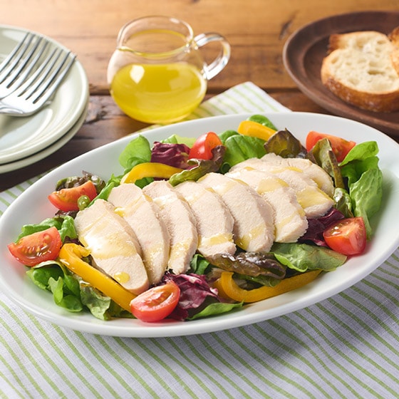 鶏肉にダメージを与えないように真空調理法でじっくりと加熱しました。 パサつきがなく、しっとりしていて、ハーブがほのかに香ります。 クセのない味わいなので、サラダやサンドイッチなどに加えて、お好きな大きさにカットしてお召し上がりください。 ■鶏肉のおいしさをお楽しみください