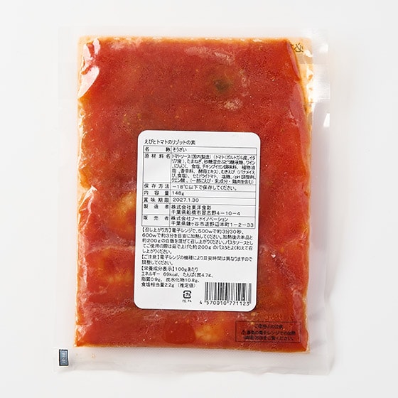 白ワインやにんにくと一緒にじっくり煮込んだトマトソースにセミドライトマトと塩味が効いた小さめエビを合わせました。 塩麹でコクを引き出しています。 本品をレンジで加熱し、ご自宅のご飯と混ぜ合わせるだけでリゾットが完成します。 お好みでパルメザンチーズやオリーブオイルを追いがけしていただきますと、より一層、トマトの旨味を引き立てます。 ■お召し上がり方