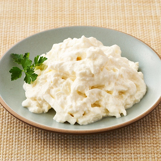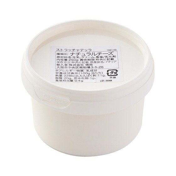 袋状のモッツァレラで包まれている「ブラータ」の中身の部分がこちらの「ストラッチャテッラ」です。細かく刻んだモッツァレラチーズと生クリームを混ぜたものでモッツァレラの組織がありながら、クリームの濃厚でミルキーな味わいが口いっぱいに広がります。 ■クリームとモッツァレラの絶妙なコンビネーションが楽しめます。