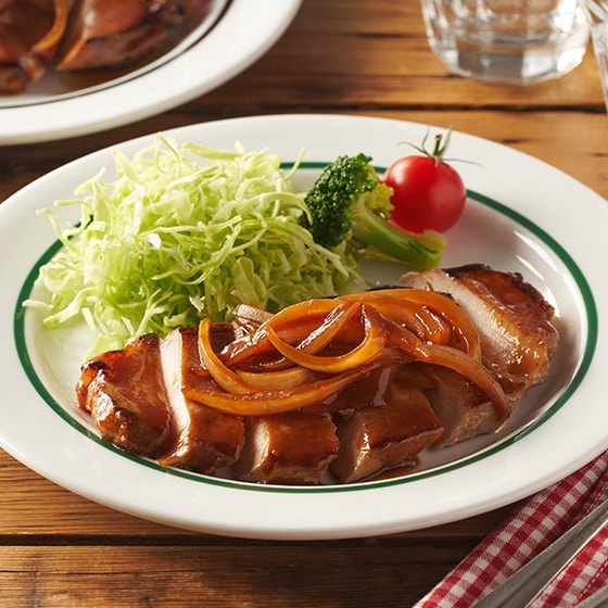 肉厚な豚ロースを、ケチャップの甘みとウスターソースの酸味やコクを活かした、どこか懐かしい王道の特製たれに漬け込みました。たれ漬けなので、玉ねぎをご用意いただき、一緒に焼くだけで味が決まる手軽さが魅力! ごはんが止まらない、世代を超えて愛されるおいしさをお楽しみください。 ■お召し上がり方