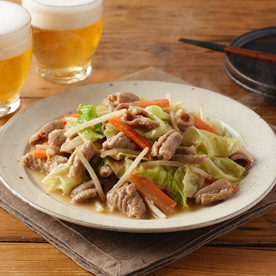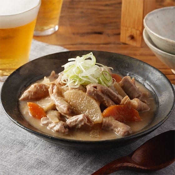 ■水煮野菜を加えて!しっかり食感の国産豚もつ煮込み