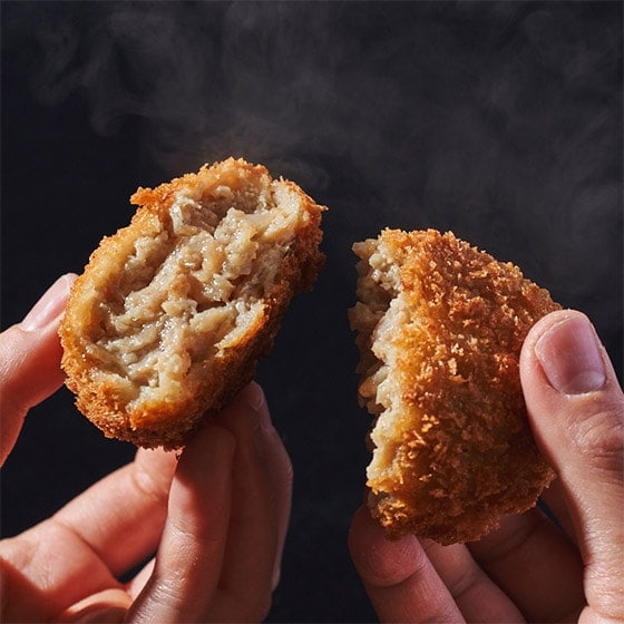 開封後はお早めにお召し上がりください。本品は加熱しておりませんので、凍ったままのメンチカツを170度のたっぷりの油で12分間揚げてください。5分間休ませてからお皿に移してお召し上がりください。