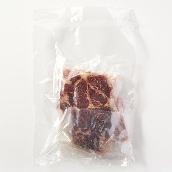 1.本品を半日程、冷蔵庫に移し解凍し、調理の約30分前に冷蔵庫から取り出し常温に戻します。 2.開封し余計なドリップをふき取ります。