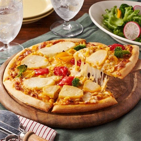 | 原材料 | 小麦粉(国内製造)、フライドポテト、ナチュラルチーズ、カレーソース、スイートコーン、グリルピーマン(赤ピーマン、黄ピーマン)、半固体状ドレッシング、ブロッコリー、イースト、食塩/セルロース、酸味料、着色料(カラメル、カロチノイド)、香料、香辛料抽出物、(一部に小麦・卵・乳成分・ゼラチン・大豆・鶏肉・りんごを含む) |
