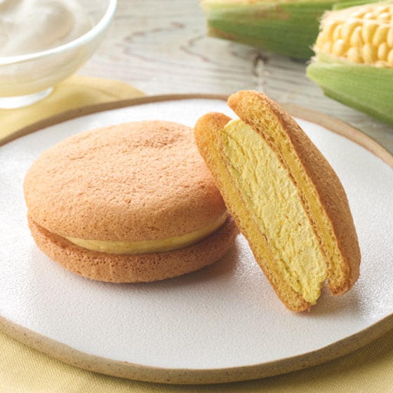 宮城県産の卵と牛乳を使用し、ふんわり柔らな生地を造りました。 北海道産生クリームとてんさい糖がベースのクリームに北海道産のとうきびペーストを混ぜ込み、とうきびを思わせる黄金色のクリームに仕上げました。