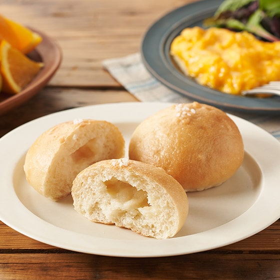 白神こだま酵母はパンをほのかに甘く、香り高いパンに仕上がるのが特長。使用する砂糖は控えめですがやさしい甘みが感じられます。 パンがしっとり・もっちりとした食感に。冷めても硬くなりにくく、時間が経ってもおいしさが持続します。