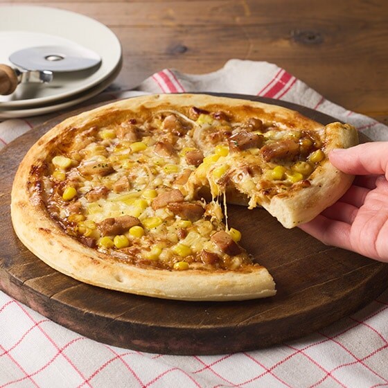 | 原材料 | ピザクラスト(小麦粉、イースト、植物油脂、食塩、砂糖、粉末麦芽)、ナチュラルチーズ、照り焼きチキン(鶏肉、しょうゆ、その他)、照り焼きソース(水あめ、しょうゆ、ぶどう糖果糖液糖、米発酵調味料、その他)、とうもろこし、マヨネーズ風油脂加工食品、玉ねぎ、パセリ粉/増粘剤(加工デンプン)、カラメル色素、加工デンプン、(一部に小麦・卵・乳成分・大豆・鶏肉・ゼラチンを含む) |