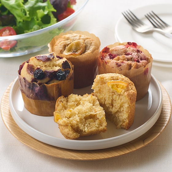 (ストロベリー)素朴な味のマフィン生地に細かくカットしたいちごを練りこみました。いちごの酸味が生地の味を引き立てます。 (バナナ)素朴な味のマフィンにバナナをトッピングしました。マフィンとバナナのやさしい甘さが交わり、絶妙なおいしさをお楽しみいただけます。