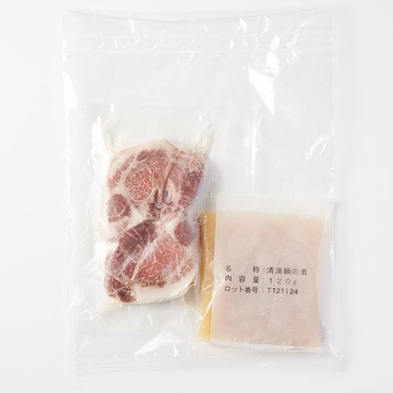 | 原材料 | 【濃縮清湯スープの素120g】醤油(国内製造)、チキンエキス、生姜、砂糖、香味油、でん粉、食塩(一部に小麦・大豆・鶏肉を含む) 【ローストポークスライス100g】豚肩ロース(カナダ産)、食塩、白胡椒、(一部に豚肉を含む) |