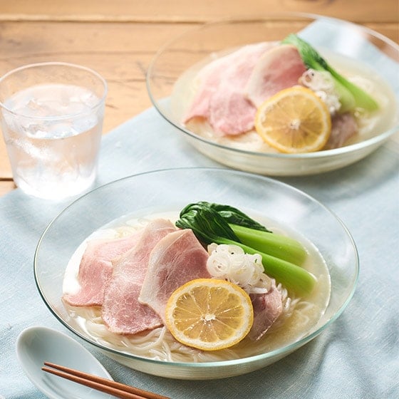鶏ガラの深いコクと塩気を効かせた清湯スープに仕上げました。 清湯スープは水に希釈するだけで簡単にお召し上がりいただけます。 ローストポークと清湯スープはどちらも塩気が効いているため、濃いと感じる場合は水の量をご調整ください。