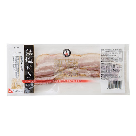 無塩せきとは、発色剤(亜硝酸ナトリウム)を使用せずに製造する事です。「塩せき」とは「えんせき」と読み、原料肉を食塩や発色剤・砂糖・香辛料などとともに一定期間漬け込むことで、発色剤の使用が必須になります。 それに対し、発色剤を使わずに一定期間塩漬け(しおづけ)することが、 JAS法で言う「無えんせき」です。この商品は、無塩せきの商品です。 ■鎌倉ハムクラウン商会のこだわり
