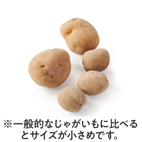 ほんのりした甘みがあり、小ぶりなじゃがいもです。 幅広いお料理にお使いいただけます。甘みをそのまま味わえるふかしいもや、ジャーマンポテトがおすすめです。 皮が薄いので洗ってそのままレンチンしたり、カレーやシチューに入れて皮ごとお召し上がりいただけます。 じゃがいものしわにつきまして