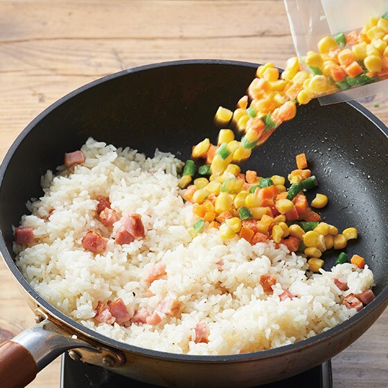北海道産のコーン、にんじん、いんげんを食べやすい大きさにカットし急速冷凍しています。彩りも鮮やかです。 ■お召し上がり方
