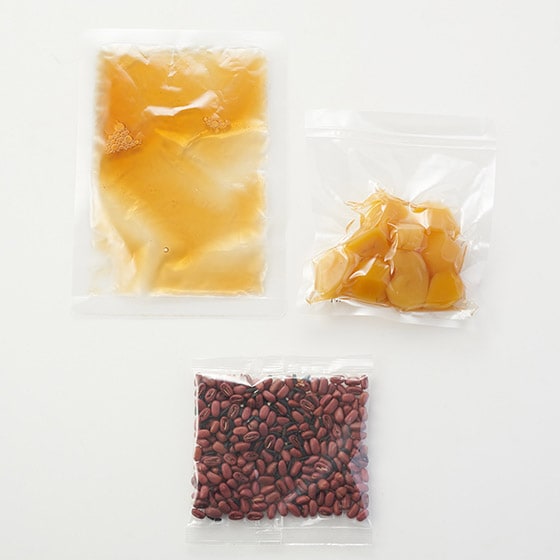 | 原材料 | 栗の具:栗(九州産)、砂糖、赤飯の具:小豆(北海道産)、黒米(九州産)、だし:しょうゆ(小麦・大豆を含む)、米発酵調味料、昆布だし、食塩、梅酢 |