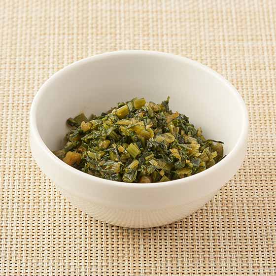 炊き上がったごはん2合に1袋を液ごと全部混ぜ込んでいただきますと、色どり良い菜めしができ上がります。緑の色合いが良く、おにぎりに握るなどして行楽のおともにも最適です。![]() |