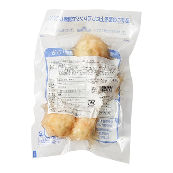 原材料 | すり身[スケトウダラ(国産)]、えび、枝豆、植物油脂、玉ねぎ、鶏卵、砂糖、食塩、でん粉、昆布エキス、異性化液糖、デキストリン、酵母エキス、魚醤パウダー、衣(小麦粉、でん粉、乾燥パン粉、食塩、鶏卵、脱脂粉乳、えびパウダー)、揚げ油(なたね油、パーム油)、タレ(醤油、水飴、でん粉、清酒、米発酵調味料、柚子果汁、かつお削り節、砂糖、食塩、そうだかつお削り節、昆布)、(一部に卵・乳成分・小麦・えび・大豆・ごまを含む) 添加物:増粘多糖類、膨張剤 |