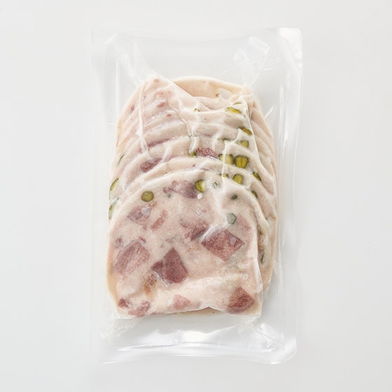 フランスではソーセージのことを「ソシソン」と呼び、ソシソンを使った伝統的な料理がいくつもあります。ソシソンは豚肉のみのシンプルなものから、ナッツやオリーブ、ドライフルーツなどを混ぜたものなど様々なバリエーションがあります。 そんなソシソンをコダマ風に「豚タンとピスタチオ」を入れてボロニアソーセージタイプにやわらかくアレンジしました。2種の具の食感が楽しい一品です。 ■コダマとは