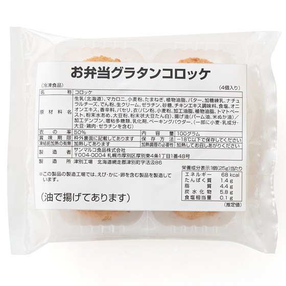北海道津別町の酪農家から集めた牛乳を使用。 バター、生クリーム、パルメザンチーズを加えて、コクのあるホワイトソースに仕上げました。 細かくカットしたマカロニを混ぜ込んだ、小ぶりな一口サイズです。 電子レンジでかんたん調理、お弁当に大変便利な商品です。 ■揚げたての食感