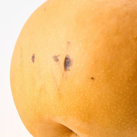 梨は実がやわらかく、輸送中に多少のあたりが出てしまう場合があります。商品の特性としてご了承のうえ、あたりのある場合は