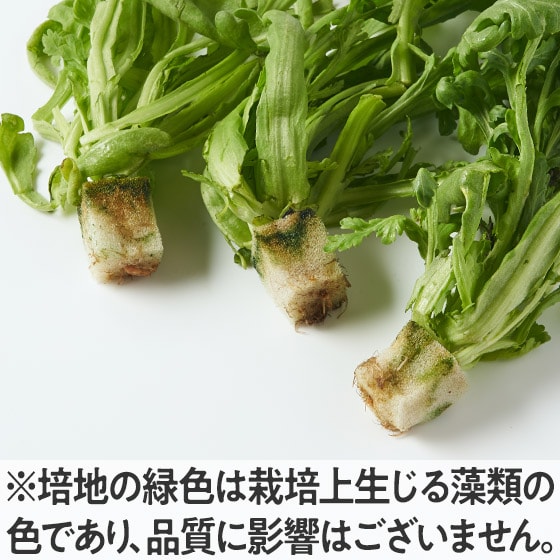 クリーンな栽培環境で育てられた春菊です。 虫や土汚れが無く、さっと洗うだけでお使いいただけます。 |