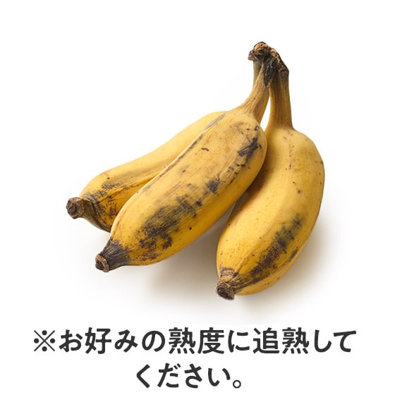 配送中の傷みを避けるため、青みがある状態でお届けします。そのためお届け後すぐにはお召し上がりいただけません。 常温で追熟して全体が黄色くなり、さらに黒い斑点が出てくると食べごろです! 追熟の程度によって食感や味が異なるので、お好みのタイミングを見つけてみてください。 【ご注意】バナナは黄色く熟したものを配送すると、配送中の衝撃による傷みやクールによる低温障害(皮が黒くなる等)が発生する可能性があるため、青い状態でお届けしています。夏場は3-7日程度を目安に黄色くなります。なお、追熟される環境やバナナの熟度により日数は前後します。シュガースポット(黒い斑点)が出てきたり、房から簡単にはずれるようになったら食べごろです。乾燥した環境やエアコンの風に直接あたる環境では追熟が失敗する可能性がありますのでご注意ください。 先端に直径1cm程の黒い種があったり、芯がある場合があります。また、風で葉っぱが擦れ、実の表面に細かな傷や黒いシミがあったりしますが、中身に影響はありませんのであらかじめご了承ください。バナナの樹液が衣類につかないようご注意ください。 ■保存方法風通しのよい常温の日かげで追熟させて下さい。可能であれば、吊るしていただくのがおすすめです。直射日光が当たると日焼けしまっ黒になるのでご注意ください。 |
