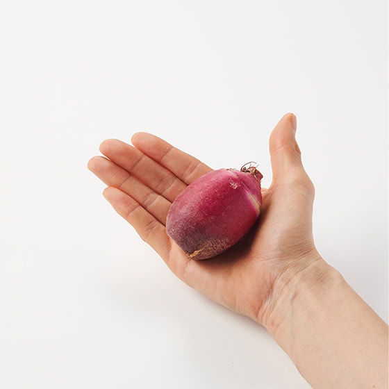 食べて応援!小玉の紅くるり大根です。