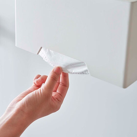 下からマスクを引き抜くだけ。マスクを取り出しやすいように底面が斜めになっています。 ■使用上のご注意