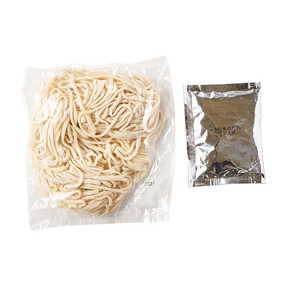 こしの強い冷たいめんを、温かい汁につけて食べる埼玉名物の肉汁うどんです。肉と具材はご用意いただき、添付のたれと水で煮込むだけ、かんたんに本格肉汁うどんをご家庭でお楽しみいただけます。 ■国産小麦、三段もみ製法