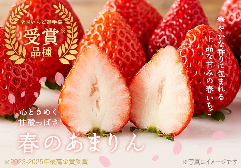 いちご業界注目の全国いちご選手権で「最高金賞受賞」の品種あまりんは、濃厚な甘さが特徴です。専門家も認める「あまりん」をぜひお召し上がりください。