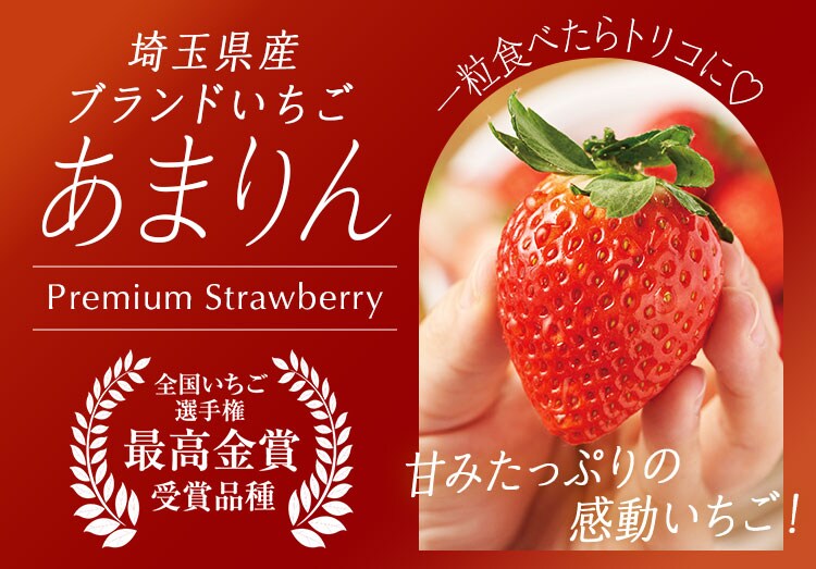 いちご業界注目の全国いちご選手権で「最高金賞受賞」の品種あまりんは、今の時期だからこそ味わえる感動的な甘さが特徴です。専門家も認める「あまりん」をぜひお召し上がりください。