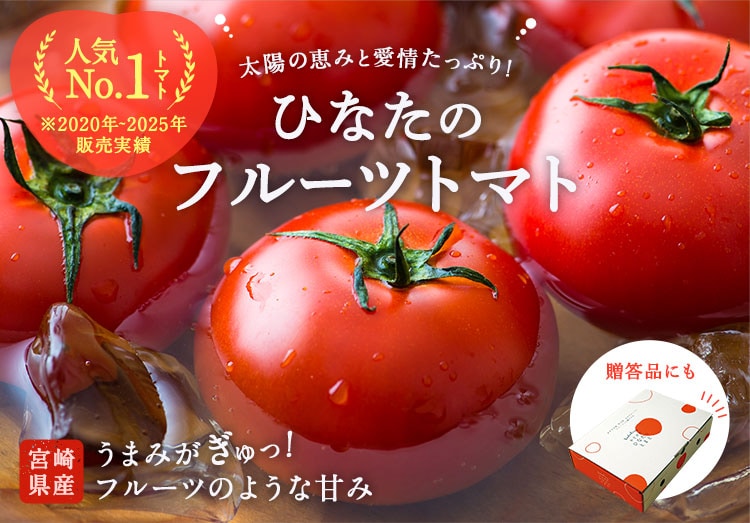 一年を通して温暖な気候に恵まれ、「日本のひなた」と呼ばれる宮崎県のトマト産地、門川町を代表するフルーツトマト。12〜6月にかけて甘みが増し、まるでフルーツのような甘みを感じていただけるのが特徴です。新鮮な状態では、甘みと酸味のバランスがよく、濃厚な旨みとコクを感じられます。日が経つにつれ果肉が少しずつやわらかくなり、味もまろやかに。お好みに合わせて味の変化をお楽しみください。